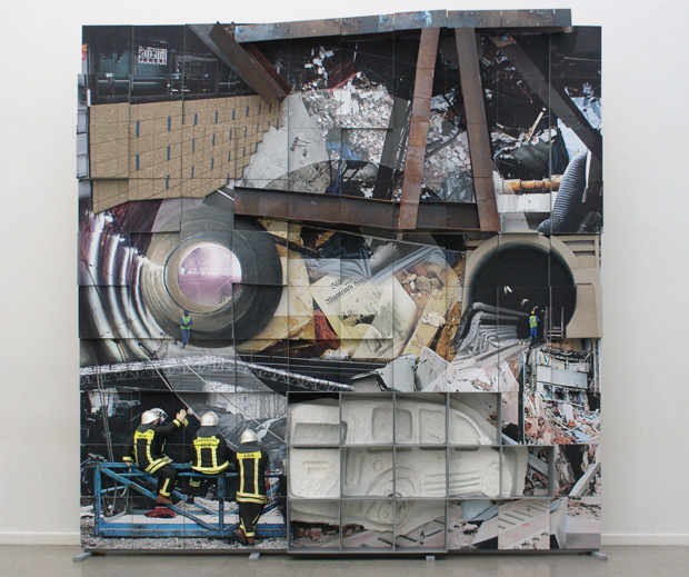 histarch. 3. märz 2009: einsturz der histotischen archivs der stadt köln. mobilität ist die quadratur des kreises. die löcher in der geschichte sind menschengemacht, wie die im schweizer käse: ergebnis der art und weise, realität zu produzieren. köln – ewige baustelle, auf- und umgeschichtet seit 2000 jahren. in der neueren geschichte unterhöhlt und durchbohrt. oben soll der automobile mensch, nein, nicht löcher in die luft träumen, sondern abgase in dieselbe fahren. die, die sich sachgerecht und vernünftig verhalten und sich öffentlich fortbewegen, werden in die unterwelt verbannt. die riesenbohrer – in den alpen, unter der elbe, auf der frühlingsinsel madeira erprobt – bringen den kölner untergrund und die ihn durchströmenden grundwassermassen in bewegung. der absturz des kölner stadtarchivs nicht als unfall mit menschelnden unzulänglichkeiten in der ausführung, sondern als brennpunkt der ewigen baustelle, die angewandte "schöpferische zerstörung" (schumpeter) als götzendienst einer autogerechten kapitalistischen umformung – der ständige, gewollte, bewusste umschlag von produktiv- in destruktivkräfte.