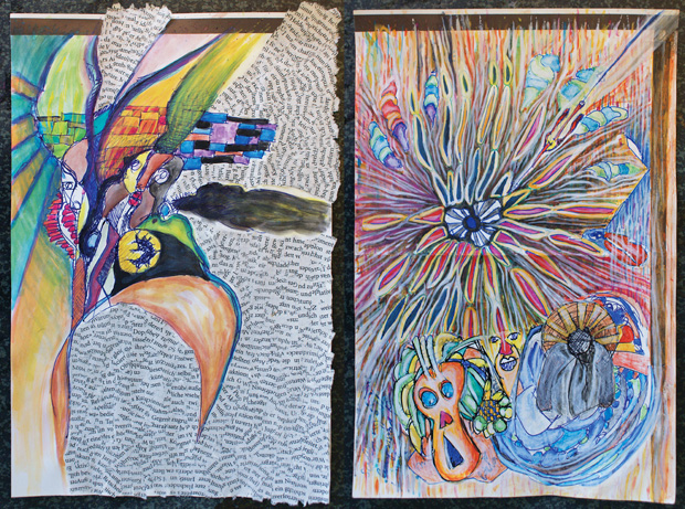 masse variabel material papier, diverse stifte, klebstoff, rotwein, kaffee, wasserfarben, deckfarben, kleister, papierschnipsel ausstellungen 2013 galerie eleonore wilhelm, ludwigshafen · mehrfach bei offenen ateliers work in progress